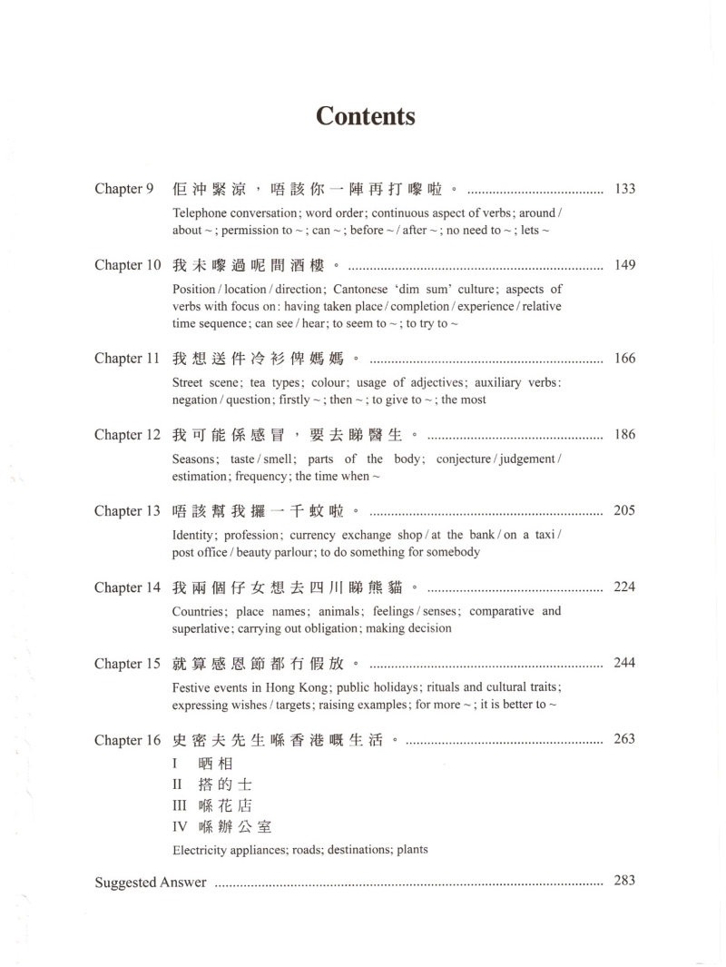 |  | Culture: Inclusion of various Cantonese cultural elements in each chapter, enabling complete understanding of para-linguistic backgrounds.