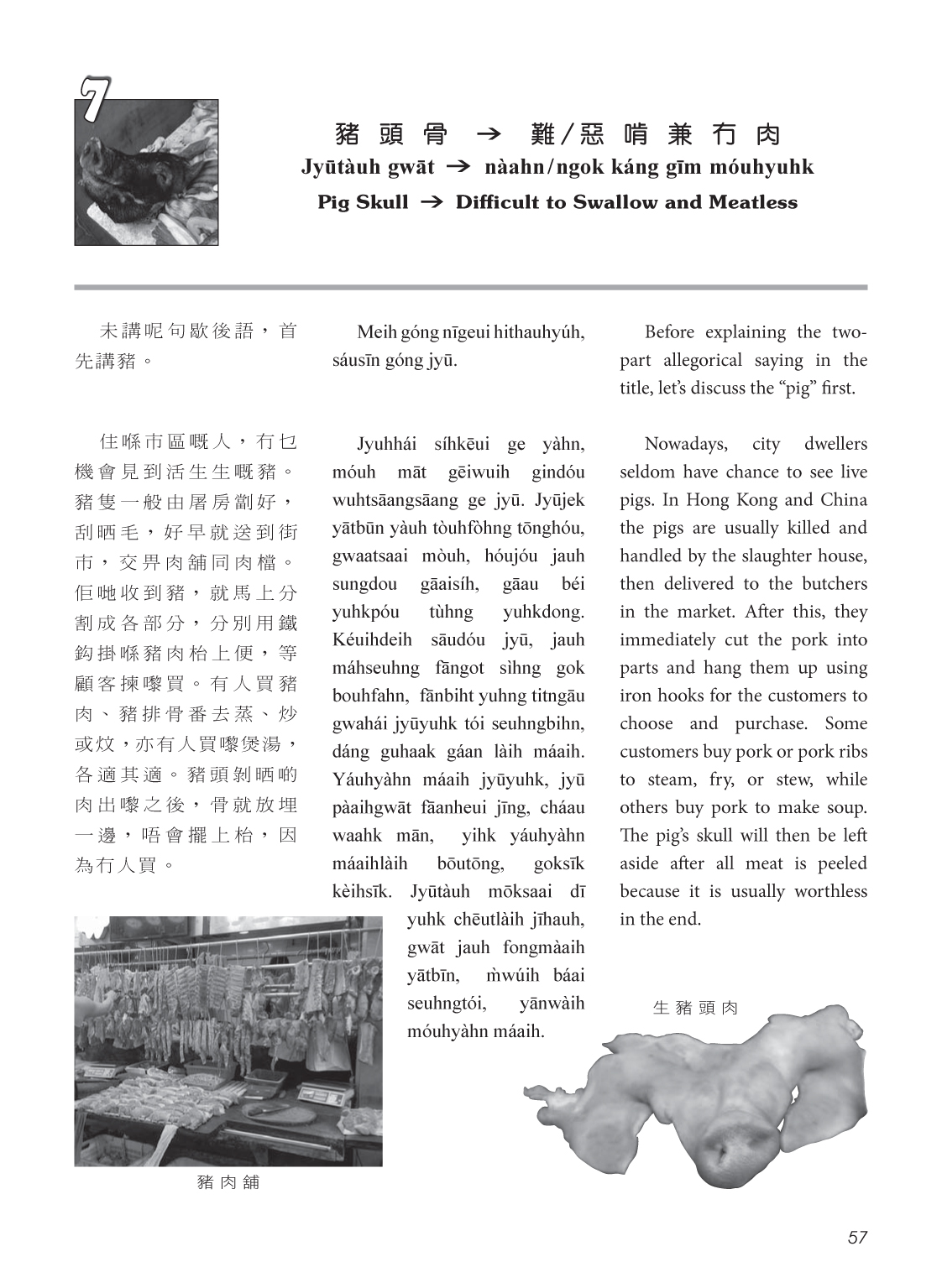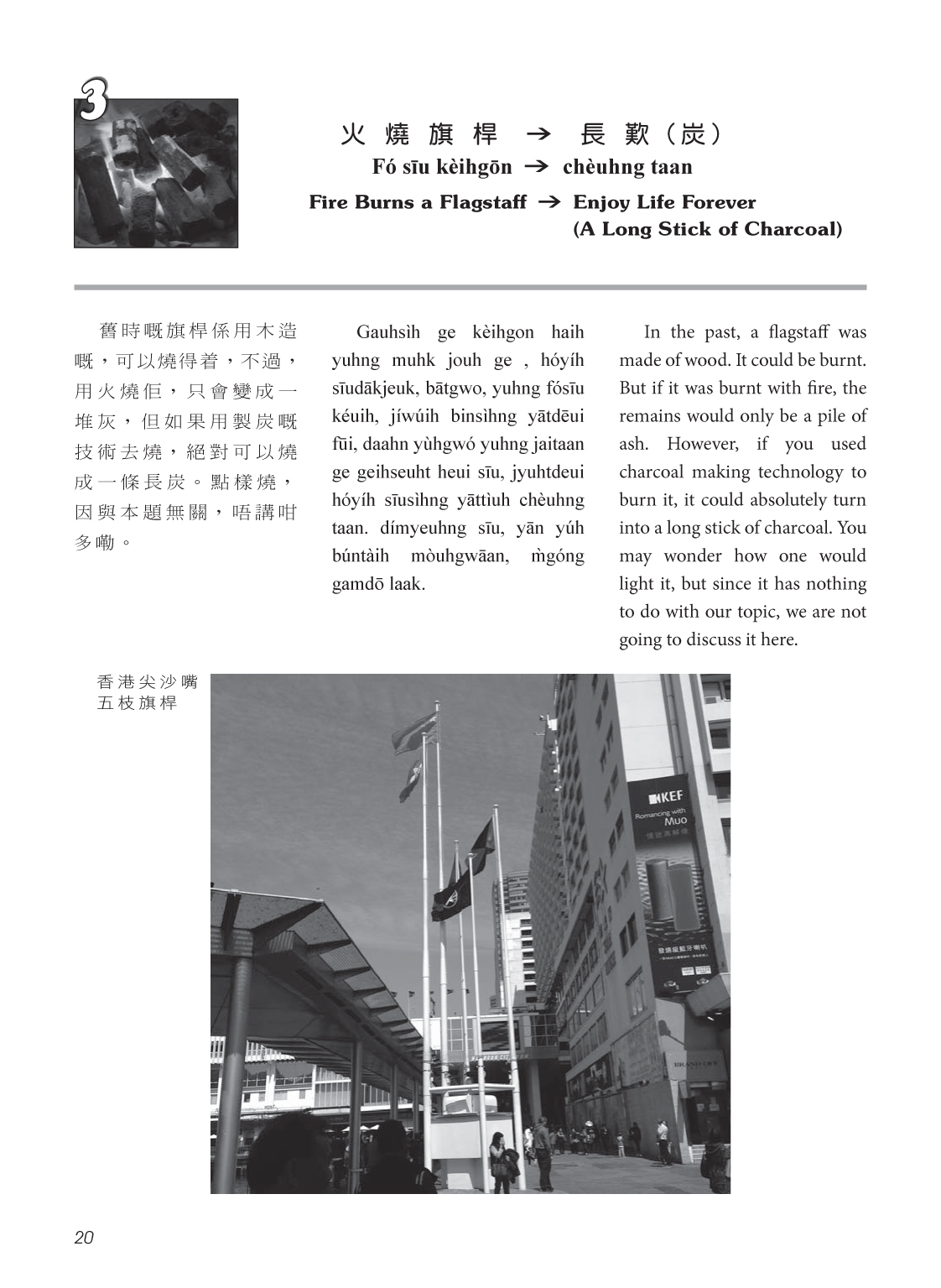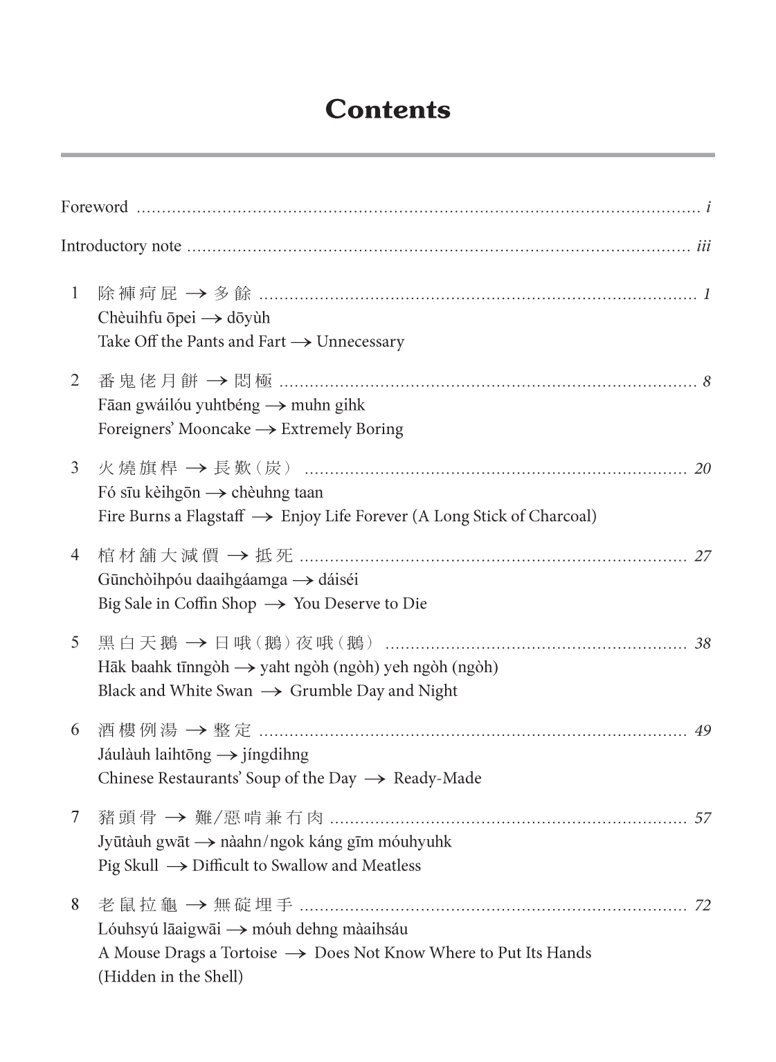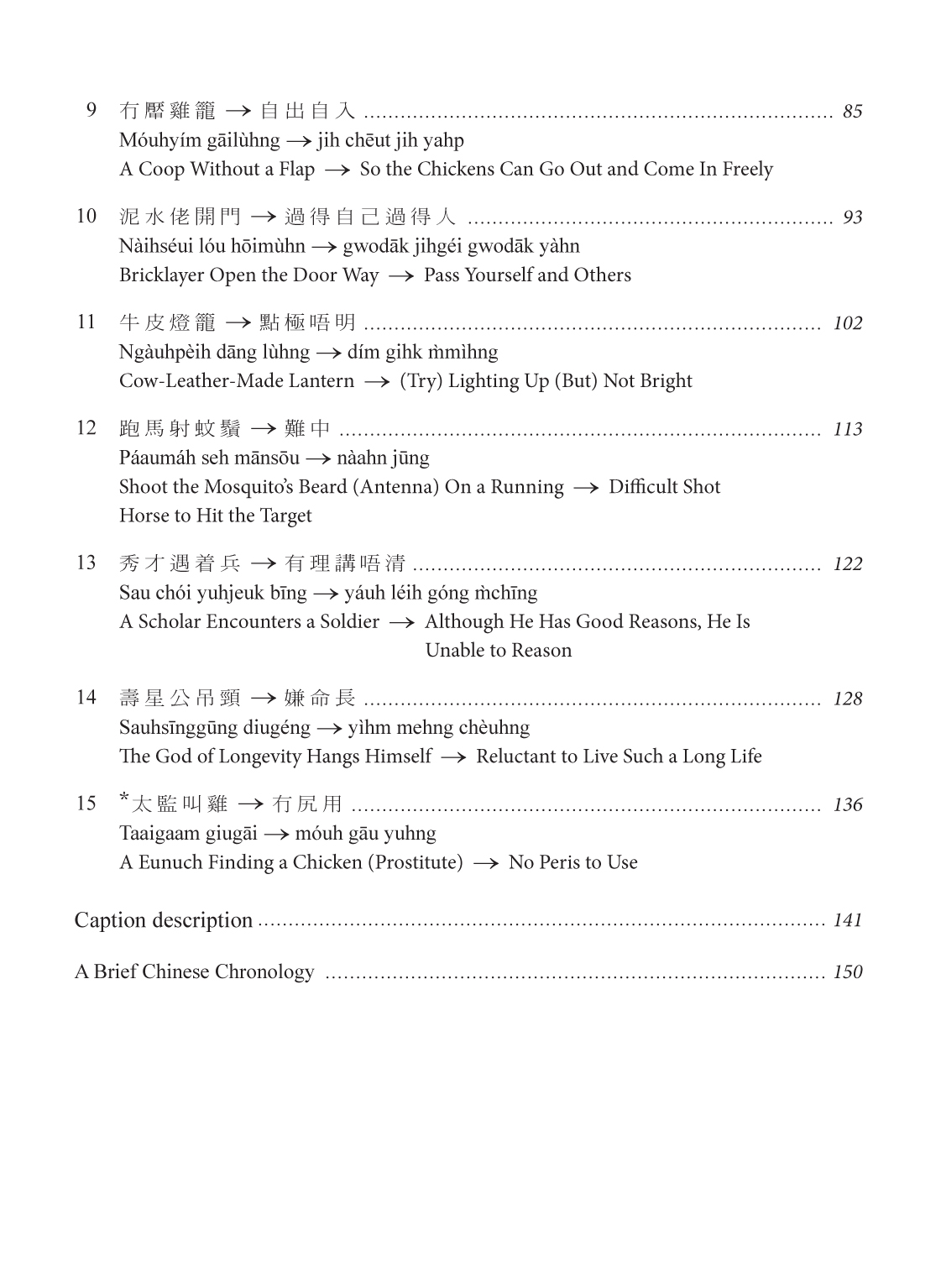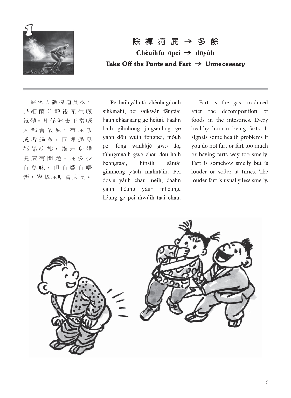 All sayings are focused on with cultural points and will take them as a platform to introduce history, culture, customs, living habits, natural science, and other general knowledge. Idioms, common sayings, and proverbs with similar meanings are also introduced. So really, the book is ¡§More than Cantonese two-part allegorical sayings¡¨.