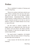 This is a handbook for students of Cantonese and visitors to Hong Kong. There are two sections in this book. The first section is common vocabulary. The English entries are in alphabetical order. The second section is appendices, with detailed lists of food, drinks and names of place in Hong Kong.. |
