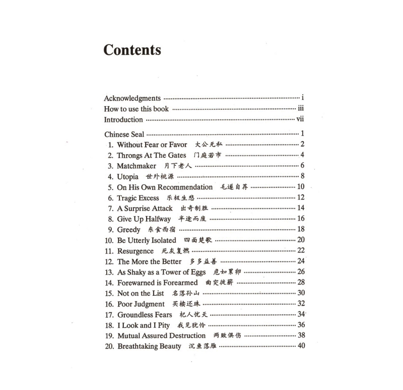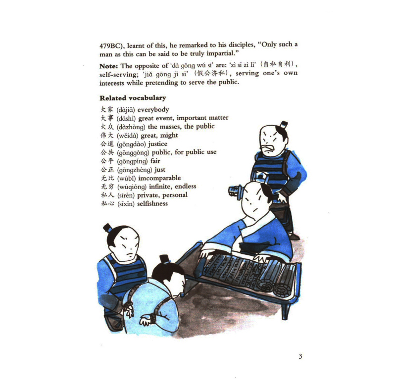 |  | Illustrations, photos of cultural relics and a brief Chinese chronology chart are included to further illustrate the historical backgrounds of the sayings.