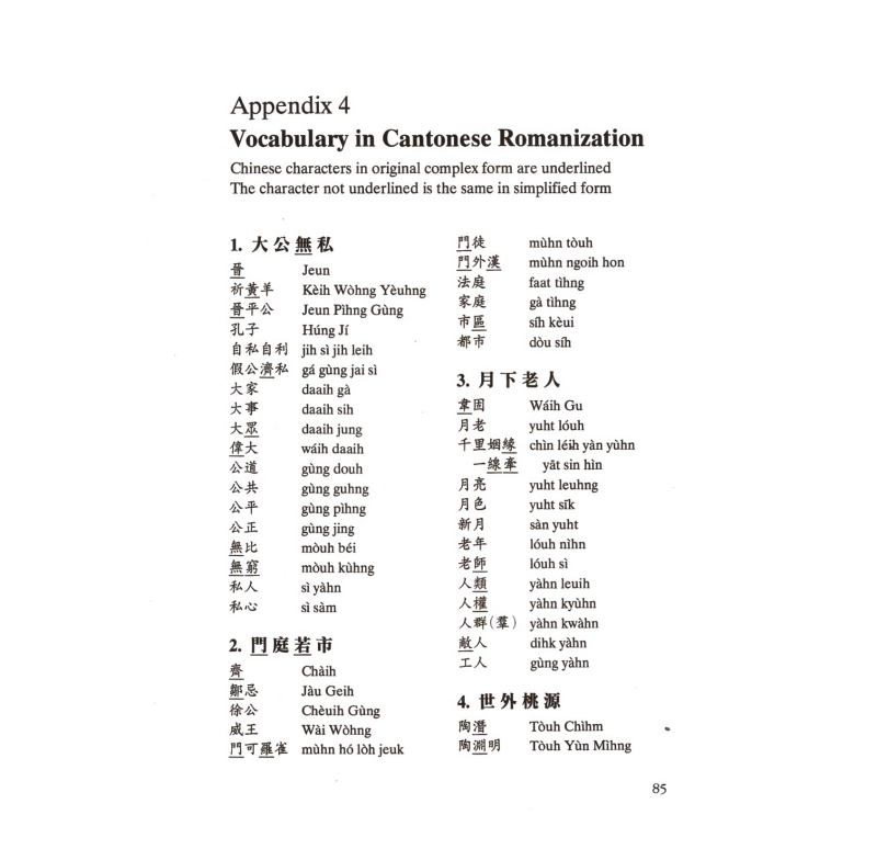 |  | Simplified Chinese and Pinyin are used throughout the book and Traditional Chinese with Cantonese transcription are provided in the appendix for easy reference.