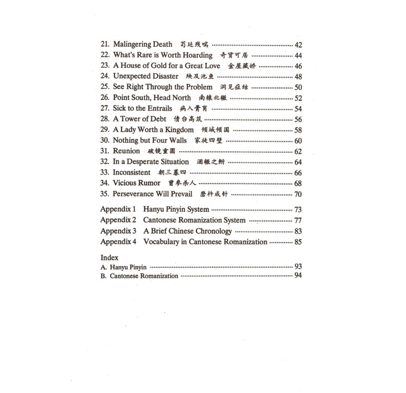 |  | Two sets of transcription are provided: Hanyu Pinyin for modern standard Chinese and the Yale systems for Cantonese to help the readers to pronounce the sayings accurately.